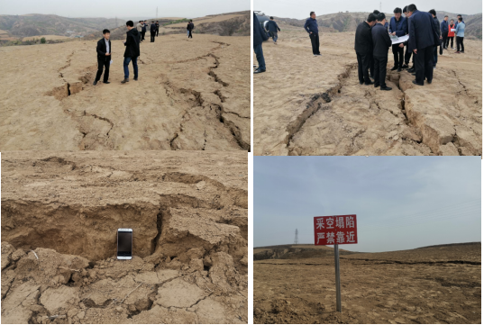 2020年5月8日榆林市府谷县发生2.5级地震(塌陷),经现场踏勘,影响区域位于老虎沟煤矿采空区上方一山顶处,此处为农田和荒地,无人员居住,也无建筑物,地震主要造成地表环境破坏,形成多条地表裂缝。塌陷造成地面破裂带宽约30米,长700多米,带内分布多条近南北向的地面裂缝,这些裂缝走向基本与老虎沟煤矿采空区走向一致,裂缝最大垂直落差30多厘米,最大宽度约20厘米。塌陷还诱发附近多处黄土陡崖坍塌。