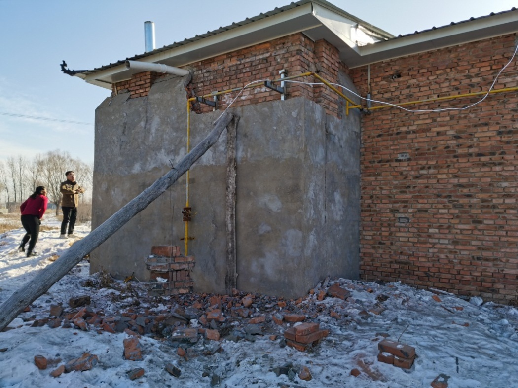 2020年12月15日榆林市榆阳区2.5级地震造成居民房屋墙面砖块脱落